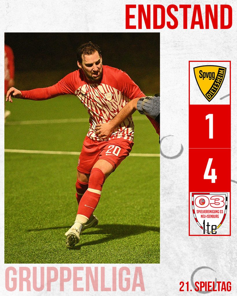 Unsere 03 gewinnt am 21. Spieltag mit 4:1 bei der SpVgg Dietesheim und bleibt Tabellenführer.