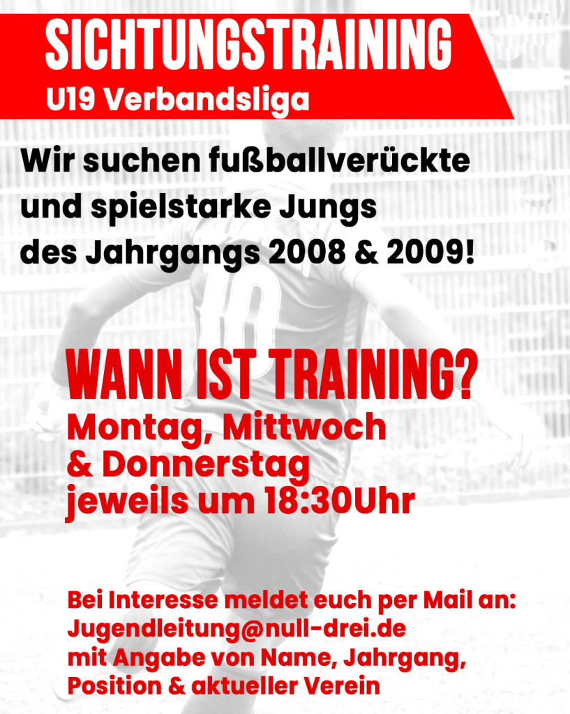 Bei Interesse meldet euch per Mail an: Jugendleitung@null-drei.de